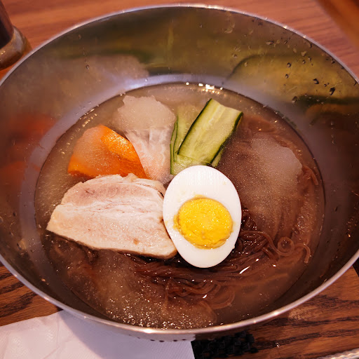 Read more新装開店して間がないため、週末のランチ時間帯は長蛇の列なので、平日ランチ時間帯よりも前の11時過ぎに入りました。開店11時には既に何人か待っている状態で人気があります。 店内の雰囲気は明るく、内装や椅子やテーブル、ソファは白やレモンイエローの配色で、ガラス張りの窓が壁一面に貼られ、開放感があり店内が広く感じられます。 各テーブルには、電源AC100VコンセントとUSB給電用DC5Vコンセントがあり、スマホやパソコンが利用でき、サービスが整っています。 韓国料理と韓国カフェのカラダに優しい、カラダに美味しいというコンセントで、フローズン韓国冷麺やビビンバ、いま話題の美酢ミチョドリンクが定番人気です。 今回は、フローズン韓国冷麺とミニビビンバセット、ミチョソーダを注文。爽やかなスープがフローズンになって提供される冷麺は、この暑さにはうれしいメニューです。トッピングには、ゆで玉子、薄切りのキュウリ、人参、大根で酢漬けされておりサッパリとスープにぴったり!また茹で豚の厚切りは食べ応え充分です。冷麺は、黒くそば粉香るコシの強い冷麺で、本場韓国の冷麺が楽しめます。またお酢とコチュジャンが付いており、途中に味変を楽しむことができます。お酢の追加でスープが超サッパリになりカラダに染みわたります!ミニビビンバは量もほどよく、セットにしてお得感あります。そして、美酢ミチョソーダは甘く酢っぱさが気持ちよくカラダに入り込んでゆき、食後のヘルシーさいっぱいのドリンクでした。店員さんの接客も気持ちよく、地域に根ざしたお店になりそうですね。...