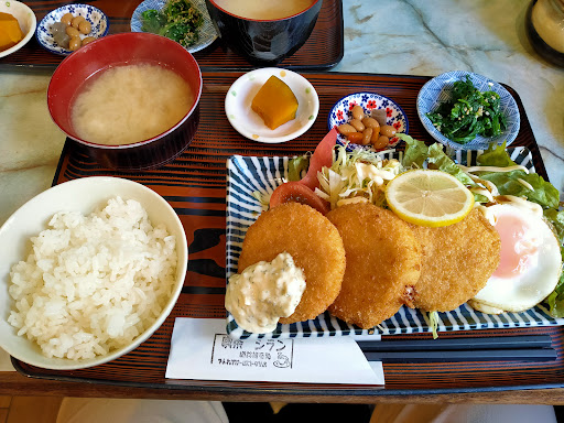 Read more平日の休みに嫁さんとランチで訪れました。旧26号線から樽井の駅に下がる交差点のすぐの所にあります。この駅前通り沿いの店は車が置けないイメージがありましたが、こちらのシランさんは向かいの矢倉倉庫の前に車を置けるので車でも大丈夫です。 店に入ると平日なのにたくさんのお客さんで賑わっていました。ご近所さんの憩いの場という感じで常連さんかなと思われる方が多かった印象です。 メニューは昔ながらの喫茶店のメニューという感じで、食事のメニューも多くかなり迷ってしまいましたが今回はクリームコロッケ定食にしてみました。ご飯の量とか男性にはすこし少な目かなと思いましたが、お客さんの年齢層に合わせた感...