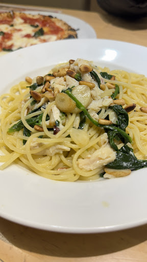 Read more平日ランチ利用しました。2人でパスタ、ピザそれぞれのランチを頼みました。数あるイオンのカプリチョーザ店舗で泉南が1番好きです。サラダバーも美味しいし、ミニトマトがいわゆる色だけ赤くて味がないのではなく、ちゃんとトマトの味がします。ドリンクもよくある自販機のようなドリンクバーではなく、ピッチャーに入ってるし、オレンジジュースも100%らしく味は濃くて美味しいし手抜きのないドリンクバーです。何より今回、接客してくれた髪を後ろに束ねていた若い女性の方。ニコニコしながら1人分のパスタを運んできたのに取り皿とトングが必要か聞いてくれたり、もう一つのランチのピザを持ってきた時はかけるオイルが、ピリ辛なのを丁寧に説明してくれ、食べきれずに持ち帰りができるか頼むとまた、にっこりと大丈夫です!と笑顔でタッパーに、いれますね。と言ってくれ、帰って開けてみると2切れずつアルミに包み、くずれないようにとても丁寧に重ねて入れてくれていました。平日昼だったので、社員さんかバイトさんかはわかりませんが、主人も帰ってきてからとても感じのいい子だったなあ。と言っていたので、お互い同じ事を思っていたようです。クアトロフォルマッジをとても丁寧に包んでくれた方、久々に,心に残る接客をされる方に出会え...