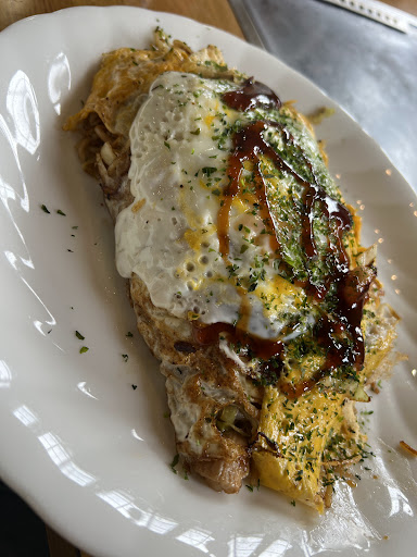 ツレはお好み焼き、自分はオムそばをチョィス。