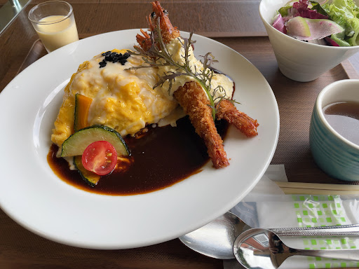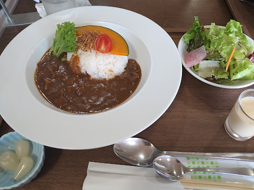 この日はお客さんも少なくて待たずに入ることができました。 テーブルに付くとすぐに注文を聞かれたので少し焦りました。店の外にもメニューが張り出されているので、食べるものを決めてから入られるお客さんが多いのかなと思いました。 注文はダイレクト呼び出し方式ですが、呼ばなくても店員さんが察知してすぐ来てくれたのでうれしかったです。 私はカレーのセットを注文しました。よくあるレトルトカレーのような味で特に感動とかはありませんでしたが、お肉がたくさん入っていたり、彩りの良い野菜が添えられていたりと満足感はありました。 サラダとデザートまで付いてました。デザートはプリンかブリュレかよくわからなかったけど、少し粉っぽい気がして不満足しました。ポテンシャルはあります。もうすこし個人的には甘さ控えめが好みです。 席によっては大きな窓辺でそとの景色が見られるので気持ちいいだろうなと思いました。 10月ですが冷房が効いていたのか室内なのにとても寒くて、上着を持ってくれ...