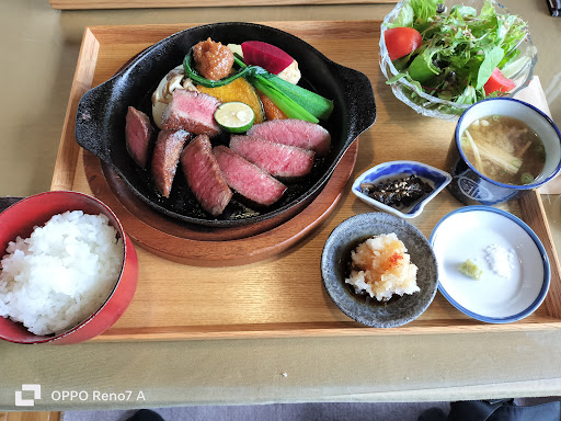 Read more美味しいお店を見つけました。必ず再訪したいと思います。 前日に予約して伺いました。 当日でも、もしかしたら大丈夫かもしれませんが… 予約で満席の日もあるので、予約はした方が良いです。 予約時の電話も、お伺いした当日も、とても丁寧で優しい対応で、最初から最後まで気持ちよく食事が出来ました。 椅子席と座卓がありますので、予約時に確認された方が良いかもしれません。 座卓の方は、近くを人が歩くと床が揺れるのがチョット残念でしたので、★1つ減らしましたが、それが無ければ、★5で間違いなしです。 日によっては、前菜プレートが売り切れになってメインしか無くなる場合もあるようです。前菜プレートも食べたいなら、予約時に伝えておいた方が良いです。 本当に久しぶりに、ここまで綺麗な切り口の料理を食べました。 包丁の手入れとかにも力を入れていらっしゃるんだろうと思いました。気持ちよく頂きました。 生野菜、焼野菜、揚げ野菜…野菜も豊富に入っていました。 ステーキは他の方の口コミにも書かれていましたが、非常に柔らかく、一切れを一気に頬張っても、サクサクと噛み切れて、肉汁がジュワっと出てきて美味しかった。 歯の悪い高齢の母世代にお勧め出来そうなお肉でした。 他の料理も、全部...