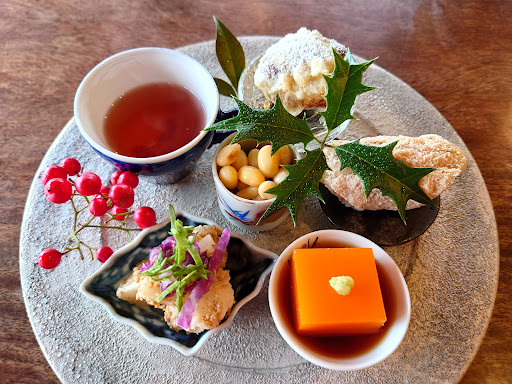 Read more世羅にある古民家でのどかな場所にありますが道中看板があるので迷うことはなかったです。駐車場は7〜8台ぐらいあり店の予約がメインということもあって駐車に困ることはなさそうです。 予約はだいたい一ヶ月前ぐらいから可能で、ほぼ平日のみになりますがそれでも予約は必須と思ったほうがいいです。それぐらい評価が高く人気のお店です。 店内は和室でテーブル席と座席が選べ混雑はしておらずゆとりある空間です。 料理は前菜として向日八寸が最初に出てきますが、写真にもある通り非常に綺麗に盛りつけされて、一品一品丁寧に作られてどれも絶品です。季節に応じて旬の素材が使われるそうなので何度も来ても楽しめそうです。 料理は黒部和牛ステーキ(予約要)を注文しましたがお肉も非常に美味しく、添えられているお塩、わさび、お味噌がとてもよくマッチして色んな味が楽しめます。お肉と一緒に添えられておる野菜も非常に丁寧に調理されてとても美味しいです。 ランチとしては少し高めと思うかもしれませんが、値段以上に満足感を得られます。たまのご褒美や接待、デートなどに...
