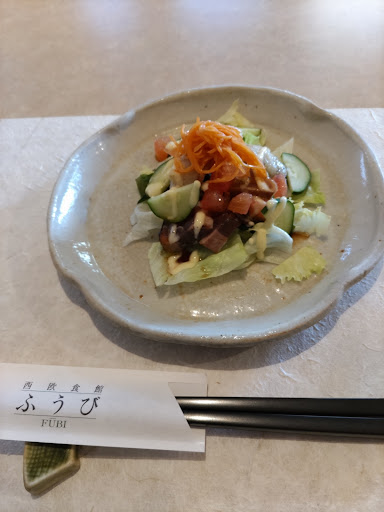 前菜はこの日は海鮮の前菜で海鮮の量がとても多いです! パンもフランスパン等をバターに付けて頂きます。 パスタはトマトクリームパスタですが、ガーリックのパンチが効いておりソースがとても美味しいです。 メインは豚肉のヒレ肉ですが、自分が今まで食べた豚肉で1番柔らかいお肉でした。 上に乗っているさつまいももとても甘く、相性抜群です。 ソースもマスタードが入ったソースでとても美味しいです。 基本はお箸で頂けるようになっていますので、フレンチが苦手な人にもオススメです。