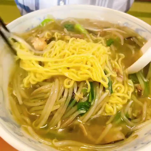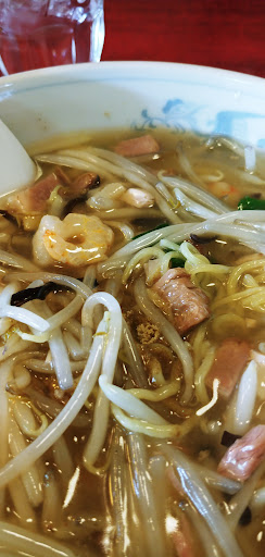 ダル麺は餡掛けに胡椒が、タップリ入っています。(よく見ると凄い入ってる) 良く混ぜて食べてくださいと言われましたが、胡椒の辛味が好きな人はあまり混ぜずに、変化を楽しみながら麺を絡めて食べるのをオススメします。熱々も、長続きしまますし、まさに大人の味 混ぜると均一になりますが、パンチ力が、弱まります。餡があまりにも熱々なのか海老が縮んでいるのはご愛顧。アクセントに入っている。煮豚の脂身が絶品です。