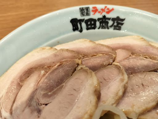 先にチャーハンが着丼!!ご飯の蒸らしが十分でないのかやや柔らか目(^^;)))なれどなかなかいけてまん(/--)/肝心な豚骨塩!!ワテの好みは♛博多麺独特のコシ・超極細の麺♕スープは芳醇でクリーミーなあっさりタイプφ(..)町田ハンのは中太もっちり系そしてスープはやや濃い目!!ワテ好みにはちと遠いかな(゜)))