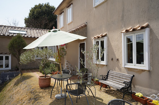 しおまち唐琴通りを散策後、休憩に訪れたのは牛窓ペンション村にある「マンザニロ」さん、瀬戸内の小島を一望出来る素敵な立地です。