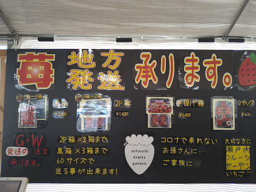 Read more初めてお邪魔しました。いつも国道2号線から瀬戸内フルーツガーデンへの標識を見て気になっていました。 仕事の合間に時間があったので立ち寄りました。フルーツを購入したり、飲食も出来るようなので少し休憩です。 3時くらいにお邪魔しましたが、ご婦人お二人の一組のみ。 少し入り辛かったですが、意をけっして入店。 メニューを見ると美味しそうなフルーツパフェの写真が。 これに決めた‼️1100円ですが これを食べました。 大ぶりのイチゴがてんこ盛りのパフェです。食べても食べてもイチゴが出て来ます。あまりイチゴを食べることがなきので、一年分のイチゴを食べました。 アイスクリームとチョコレートとか いろいろ乗っており、お腹いっぱいになりました。 ケーキとかも色々と種類があるよう...