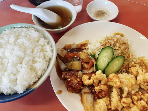 土曜の19時頃に後輩と行きました。 入口から入ると右側に食券機が有ります。1000円札と2000円札対応なので両替を、お願いしました🙇 食券機の隣に座っていたお姉さんが無言で両替してくれました😃 メニューが沢山有るので迷いましたが、酢豚定食にしました。 すると両替をしてくれたお姉さんが、「エビ天も100円プラスで付けれるよ!」この方はお店の人みたいです。 ではせっかくなんで「お願いします🙏」エビが2.3個増えるのかなぁ〜と思っていたら小エビの天ぷらが沢山乗って出てきました😁 食事が提供される前に、お姉さんが隣に座ってソースを作ってくれました。とても美しい方で心が和みます。写真を見せてくれたり年齢を教えてくれたり楽しいお話をしてくれました。 その後、中華丼の大盛りが…デカい😳ラーメンのどんぶりより更にデカい器で驚き 私の酢豚定食は御飯が大盛りで、エビ天も乗って凄いボリュームです😃食べれるのか不安に思いましたが完食出来ました。 味は、酢豚はアツアツで豚肉はプリッとしてトロンとしていて美味しい! エビ天はサクサクしてソースも美味い ぜーんぶ 満点💯です お昼の12時から13時ぐらいは混むみたいですがそこを外すと混んでないらしいです。 夜でもランチが食べれます。 女将に会って欲しいなぁ〜 また行きたいお店です😃...