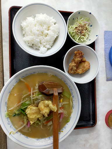 Read moreこちゃんぽん定食(1,000円)をいただきました。単品のこちゃんぽん(小さなちゃんぽん)にライス、唐揚げ、一品が付きます。「小」とありますが一般的には普通盛りです。予想してましたが(笑)期待を裏切らない具沢山の美味しいちゃんぽんです。定食のライスはおかわり自由で卓上の壺漬けという強い味方あり。唐揚げも一品(サラダ)も期待を裏切らない「正しい小鉢」の味わいです