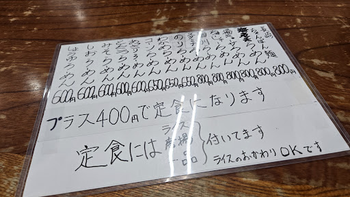 日曜日の15時過ぎに伺いましたが、店主さんお食事中でした。なんかすみません(苦笑)。でも、その後もポツポツとお客さん(みんなこちゃんぽん定食を注文してる、、、)来てます。アイドルタイ厶がないので、今回の私のようなランチ食べ損ねには特に有り難いです。