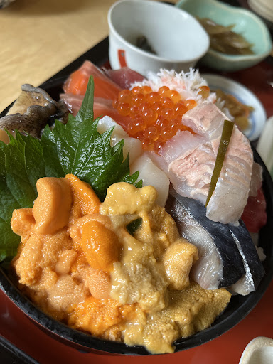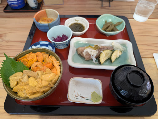 Read more積丹にウニを食べにきましたが、あいにくこの日は神社のお祭りの日で、ほとんどのお店が休店日。 探してようやくやっているお店を見つけました。予約優先のところ予約していなかったのにも関わらず、しかも開店前に行列ができていたので、開店前の時間に入れていただけました。 目当てはウニ丼でしたが、海鮮丼と御膳が気になり、とくダネ海鮮丼とお膳のセットを注文。 海鮮丼には、2種類のウニと、アワビ、いくら、カニ、サーモン、ホタテなどなど、溢れんばかりのネタが載っていました。 お膳は、焼き鮭と小鉢が5種類ほど。小鉢もどれも美味しかったです。 値段はさすがにそれなりにするもの、この味と量であれば、十分にコスパよいです。 店内も広く、過ごしやすかったです。 ちなみに、札幌にも...