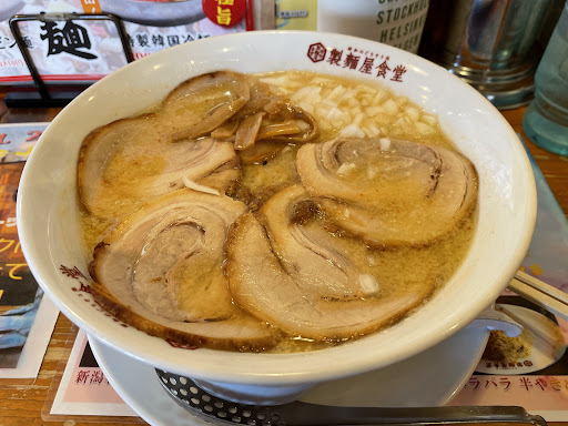 Read moreここは、僕が新潟に来て間もない頃に 友人と来ました。製麺屋食堂という名前で 少し入る事に躊躇していた自分がいました。 お店に入ってみると、笑顔の素敵な店員さんに 雰囲気の明るいお店、居心地の良い空間でした。そして、案内されるまま席に座りました。 僕達はメニューを見て驚愕しました。何と言うことでしょう。メニューが沢山あります。 麺類、定食、丼物、単品、おつまみ等 ここまで、メニューが豊富だと、何を選んでいいのか、分からなくなってしまうほどでした。 そして、私は無難に味噌ラーメンを選びました。友人は辛味噌ラーメンを選びました。 そして、単品の唐揚げを頼みました。 しばらく待っていると、お待たせしましたと 店員さんが持ってきてくれました。 最初の印象はでかい!でした。普通盛りでも 意外に量がありました。そして、1口目スープを飲みました。スープから感じられる野菜の甘み、味噌のコク、全てがマッチしていて 最高の味でした。麺も太麺で僕好みのラーメンでした!友人も笑顔で頬張っていました。 そして、単品で頼んだ唐揚げは、でかい!多い!美味い!でした。最高でした。 その他のメニューもすごく美味しそうで また、食べに行きたくなる味でした。 私は休日になると良く行きます。 皆さんも行ってない方が居られましたら 1度足を運んでみてはどうでしょうか?...