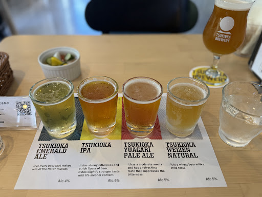 Read moreDelicious local brewed beers. Perfect accompaniment to a hot summer day in Tsukioka Onsen. I tried the tasting set. Very good tasting beers. I also tried the passionfruit summer special beer. My favourite. The food is excellent. I tried the hotdog lunch. This is the best hotdog I ate. The hotdog is smoky and the meat was great. The bun is the most incredible baked bread I ate so far in Japan. Also had some house made pickles. I ordered a lot because I wanted to try so much. What a lovely way to spend...