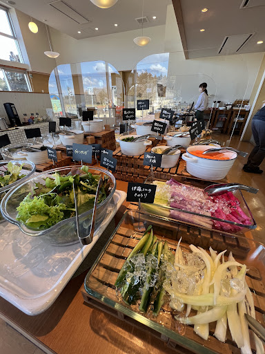 Read moreI visited this buffet restaurant and really enjoyed it. It’s on the pricier side (¥2,200), but they offer a great variety of fresh vegetables, and they even list the names of the farmers, which is a nice touch. The buffet also includes pasta, curry rice, and a drink bar (mango juice, coffee...etc), along with high-quality dishes like miso-banana marinade, chorizo with white beans, and almond slices with green bell pepper, all made with fresh ingredients. Desserts are also included, making it feel worth the price. The glass interior design creates a cozy atmosphere and lets in a lot of natural light, which adds to the...