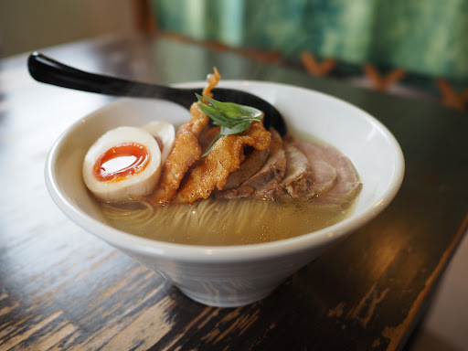 Read more渋川の住宅街にひっそりと佇む、まるでイタリアンレストランを思わせるおしゃれな外観のラーメン店です。 店内も落ち着いたインテリアで、カフェのような雰囲気ですが、少し大人っぽいピンク色のライトが照らされた席はカップルシートでしょうか(笑)