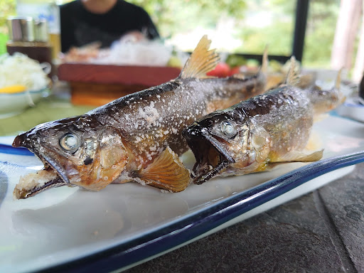 あと注文してからの待ち時間がかなりかかるので一言ほしいです。 「いけすからとってから焼いてます」じゃなくて30分とか具体的に。 私や私たちより前に来てた人たちも注文してから1時間くらい待ってたと思います。 簗場には出れますが小さい子が遊べるような浅瀬や川に足をつけて座ってられる場所(屋根つき)もあれば待ち時間も苦にならなくなるのではないでしょうか?