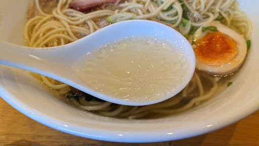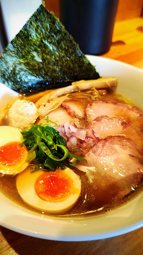 【お味】 醤油(手もみ麺)と煮干(中細麺)の全部のせをオーダーしました。 ・煮干ラーメンは煮干の旨味と香りが存分に楽しめました。たまにある煮干粉末とかで誤魔化してる系じゃなくて嬉しかった。私にはスープの塩味が強めでした。中細ストレート麺は歯切れがホント心地よかった。 ・醤油ラーメンは鶏系の豊かな香りが最高でした。煮干ラーメンとスープの色が近いけれど全く違う味で、何度も2人で交互に味わって感動してました。手もみのちぢれ麺は、さらっとしたスープによく絡んで食べ合わせ最高でした。 ・トッピングのつくね!青じその香りが爽やかでとても美味しい。 ・メンマ!醤油と煮干で違う味と大きさのものが載っていました。こだわりを感じる。