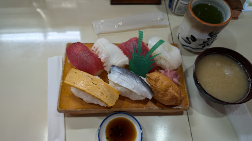 Read moreランチタイムのにぎり寿司は、しゃりの大きさがおはぎレベル✨ ゲタの上で、みっちりと隙間なく並べられています🍣 けれどしゃりだけではないんです! それに合わせてネタも大きめ‼️ だから、写真を撮っても、握りの一つ一つの大きさが今一つ伝わりにくいのです💦 しゃりは大きくても、崩れないようにしっかりと握られ、口に頬張るとボワッと解けていきます🌸 この感覚がまた美味しいのです😋 ランチメニューから注文すると、お味噌汁の他に茶碗蒸しも付いてきて1000円でお釣りが…‼️ しかも食後にコーヒーまでいただけました☕💕 お腹も心もお財布も大満足です😋👍🎵 ちなみに しゃりが大きいのは、ランチタイムだけですので、夜は普通サイズです。 もちろんランチタイムに普通サイズで食べたいときは、注文時に「普通サイズで」とお願いすれば大丈夫です😊 あ...
