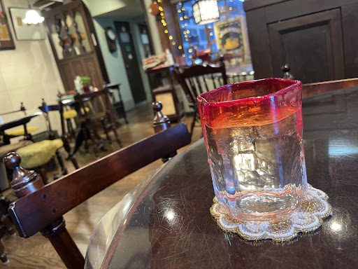 Read more5種類あるカレーのこだわりを確認したくて入店。石段通りから脇の細道に入った所にあって分かりにくいが、細い路地を数メートル入ると広々とした空間が広がる。1階は喫茶スペース、2階は和雑貨スペースとなっている。店内のBGMはJAZZ。インテリアやライティングは但馬屋のような雰囲気。伊香保温泉の石段を登り降りして、足湯でまったりした後にちょっと腰を落ち着かせてお茶をしたいならお勧めしたいお店。5種類のカレーのほか、甘味どころらしいメニュー、ソフトドリンクも豊富な懐かしい感じ。銘柄は不明だが、地ビールもあった。 入店したのは、GW後半の平日、夕方4時過ぎ。それでも、日中はとても混雑したのだと言う。 入店と同時に、早口で滑舌の悪い店長がレジを締めて出て行ってしまったため、急遽、店が5時で閉店に。我々が最後の客になった。とはいえ、忙しかった1日の仕事の後かたずけで手を離せなかった店番のおばちゃんは、ひと通り片付けると、「もう誰も来ませんから、ゆっくりして行ってくださいね」と、丁寧で温かい心遣いをくれた。 注文したのは、5種類のカレーの内、ただ一つ辛口と表記のあった「マレーシアカレー」とホットコーヒーのセット。連れ合いは看板メニューの一つとも言えるフルーツやアイスの入った白玉あんみつ。 カレーは作り置きしたものを温めなおしたのだろうが、ある意味喫茶店らしいコーヒーによく合うスパイシーな風味。ライスも軽く持ってある程度であくまで「軽食」のスタイル。欧風カレーよりは本格エスニックに近いスパイシーなもので、野菜の大きさや切り方が日本的で真面目に作られている。ランチにこのカレーをコーヒーセットで1100円余りで食べられるなら、リピートしてしまうかもだ。 白玉あんみつの白玉は、大きくてふんわりした食感。聴けば、一つ一つ手作りという。 なるほど、この方の細やかさが、この店を支えているのかな?と納得したような気がした。 いつか、ま...