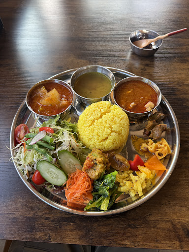 Read more2024/11/3(日・祝)にランチ訪問。 閑静な別荘地に佇む心地よいカフェです。 駐車場は店舗建物前(店舗敷地内の短い坂を上ったところ、砂利駐車場)と数十メートルほど離れた場所(土の駐車場、写真6枚目)と十分な駐車スペースがあります。 おすすめでネパール定食というダルバートというワンプレートのカレーにコーヒーセットをプラスしていただきましたが、食欲をそそるカラフルな見た目にヘルシー食材、ネパールの激辛調味料による味変で大満足でした。 たまたま他にお客のいない時間でしたが気さくな御夫婦と...