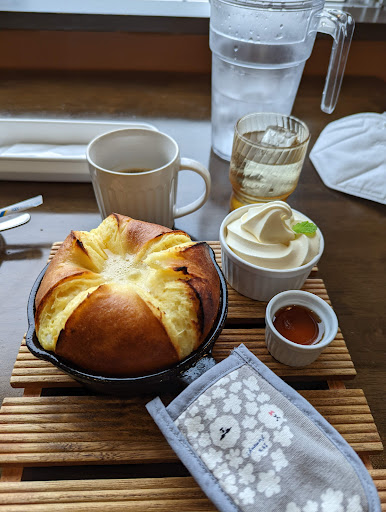 After my hike through the neighbouring hills, which turned out to be a wet and slippery mud party, I needed a place to sit. The cafe turned out to be the perfect place for a French Toast with creamy soft cream ice and maple syrup. Jummy! Really good food but don't burn out your palate with the first bites! No 5 stars because the coffee was already cold by the time I got my French Toast. They should serve it together, cause the...