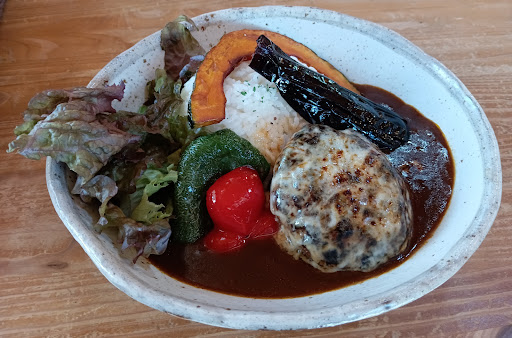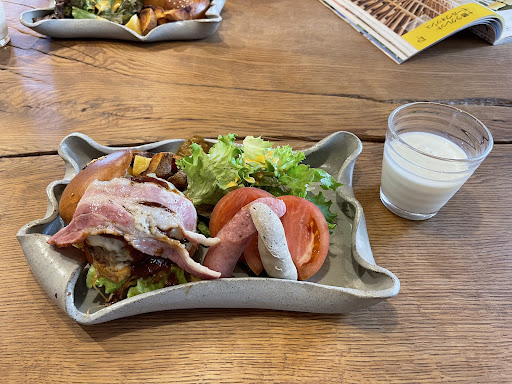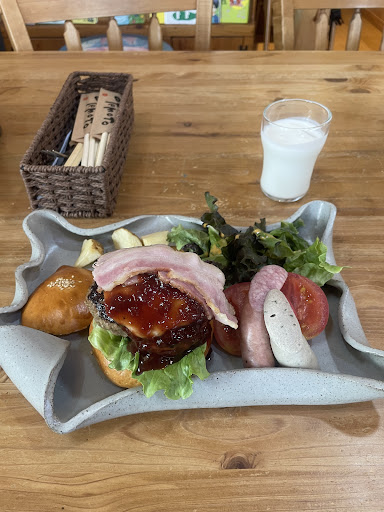 Read more平日の昼のみにしか来店しないので、優しい静かな時間が流れています、 タイミング悪いと、近隣の奥様たちのつどいであったり、平日の観光客に出くわしますが自分が来店した数回は半分くらいの割合で貸切状態でした、どしゃ雨だったり、開店まも無くだったりしたため ハンバーグのカレーもすごく美味しいと評判でしたが、バーガーの魅力と美味しさで一択になってます。 はじめての時は、牛乳が飲めないので注文の時にいりませんと伝えたらヨーグルトに変えてもらえてそれだけで最高でした、当然、ハンバーグ、ベーコン、チーズ、ソーセージ全て美味しかったです、パンのカリッとがかなり好物で、全て箸で頂きました。 2度目は言い忘れて牛乳が出てきてしまい、申し訳無いですが残してきてしまいました。 そーゆー所とわかってはいるのですが、観光で無く昼食にこちらへ伺う者としてはデッキで涼みながらサービスの冷たい水を飲んでいる方たちのせいで駐車場に停められず、猛暑の中ぼうず山へ向かったことも、それもいい思い出になればいいのですがそうはいかない、個人の感想です。 多数のクチコミを拝見すると、ただの昼飯に行くような場所では無かっ...