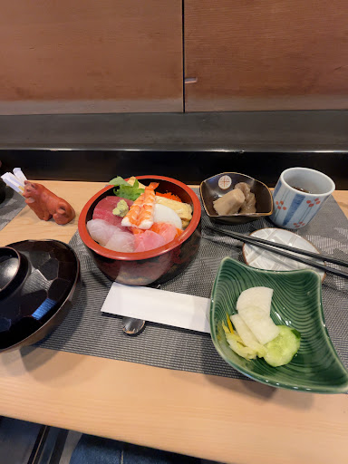 Read more評判が良いのが気になりランチで入店。 メニューを見てると店主がちらし寿司なら大盛り無料と言ってくれたので、ちらしを注文。 店員全員の気遣いがすごく良くて、お店の雰囲気がとても良い。常連さんなどがいても、初めての自分に色々気遣ってくれた。 ちらし寿司、お新香、イカのサラダ?、味噌汁が出て全て美味しくて全然安いと感じました。食後のコーヒーとケーキもすごく美味しく、帰り際に店員さんや常連さんと少し話しましたが、全員とても気さくで話しやすく...