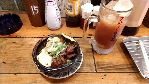 牛すじ煮込みも味がしみしみ、肉はトロトロ。 炭火焼きおにぎりもカリッと香ばしくて美味しかったです。