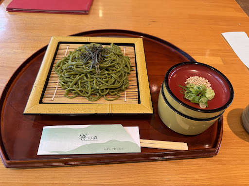 私が食べたのは霧の森セット。霧の森茶そばとおぼろ豆富がセットになったもの。 おぼろ豆富は豆の味と香りが高く、出来立てなのかふんわりと温かくで美味しい。 対して茶そばは暑い夏に気持ちの良いキリッと冷えてるのが嬉しいけど、今まで食べた茶そばの中では経験ないくらいお茶の味も香りもしない。ちょっと残念。 無料で置いてくれているお茶の方が美味しかったかも。 1番美味しかったのは母が注文した昼膳に入っていた野菜のかき揚げ。高さが4〜5センチくらいあるのに、カリッカリ。油でべちょっとした感じは皆無で玉ねぎの甘さが最高。 このレベルのかき揚げはなかなかないかも。