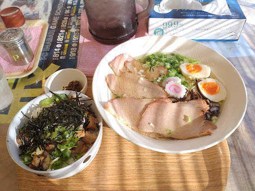 Read more本格的で、ボリュームもあって、繊細で、とってもおいしいラーメン屋さんです。 週末のランチで訪問しました。 8月の終わり頃と言うことで炎天下の中外は35度前後あったのですが、屋外テントの中は水を蒸発させながら扇風機を回してらっしゃるようで体感26-7度くらいでしょうか、(扇風機の映像ご覧ください。)全然暖かいラーメンいけます! みそラーメン、カレーラーメンと、チャーシュー丼を注文しました。 みそラーメンは、愛媛の田舎味噌ではなくて本格的な味噌を使ってらっしゃるのでしょうか、味わい深いです!チャーシュー、半熟煮卵、もやし、メンマ、ネギ、きくらげが乗っています。 ボリュームがあって本当に美味しいです! カレーラーメンは、なんと魚介出汁です。 魚介出汁にカレーが本当に合います!マジで美味いです!具はたくさん、チャーシュー、半熟煮卵、もやし、メンマ、ネギ、キクラゲです。 チャーシュー丼は、チャーシューが80ー100グラムくらいでしょうか、400円とは思えないボリュームでだしの効いたタレと、半熟煮卵でいただきます。 これもマジで美味いです。 いやー、他にもこの場所で割烹料理や、レストランを経営されているだけあって、本当に芸が細かく、美味しいです。 また、ご主人、本当に気さくなお方で感動しました。 大...