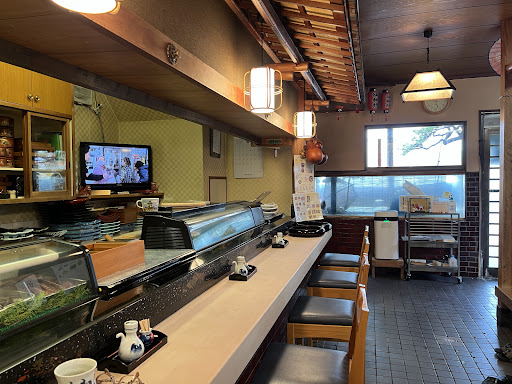 Read more前や横を通りながら一年が経ち 転勤する前に一度は行かんと!でよってみた。 時折小雨が降る寒い土曜の13時前 先客はおらずカウンターの端に座 入口に近く逃げやすい場所 三人でやってるのね ラミネートされたメニューから ちょっと奮発して大将のオススメ寿司を発注。 おしぼり、お箸、お茶、醤油皿着 携帯ゲーム、TVチラ見しながら待 お皿にきれいに盛られたお寿司着 醤油を皿に画角を考えながら撮影 手でつまんでいただきます。 カウンターで頂くお寿司いーなぁ 雰囲気...