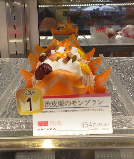 ハタダは半年ぶりに行きました。 店内のショーケースの中で美味しそうだった渋皮栗のモンブラン、いちごのモンブランを買いました。
