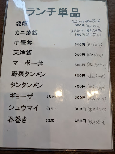 ランチ定食(油淋鶏)を注文。ご飯大盛りにするか悩んだけど、初めてのお店なので普通で注文。から揚げが旨かった。そして大きくて食べ応えがありました。味付けは普通かな。餃子は小ぶりで食べやすかったけど、味は普通でした。ご飯大盛りにしなくても十分お腹いっぱいになりました。リーズナブルでお腹いっぱいになれます。が、本格的な中華料理を食べたい方には物足りないかもです。私以外は常連さんばかりでした。