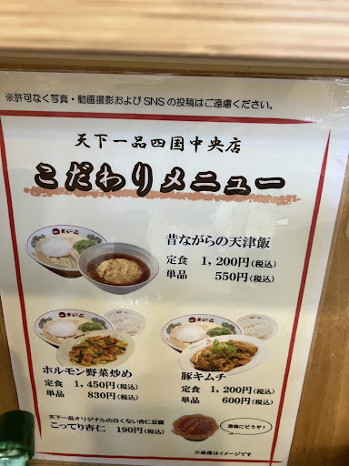 ラーメンとセットの定食や一品料理も豊富です。 季節限定の冷やし中華やメニューで見かけて凄く気になった「瀬戸内ラーメン(おそらく塩?)」などがあります。