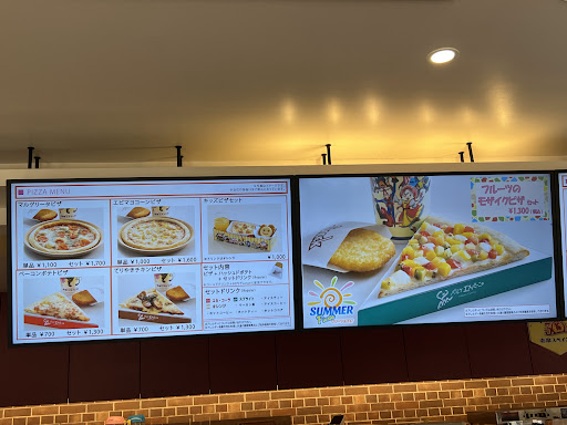This restaurant is the most valuable one after we walked around to look for different menus inside the park. The pizzas 🍕 were all delicious and served hot (very important!!!) We ordered one margherita and one japanese style with shrimp and corn, while upgrading one of them as set with hash brown and tea. As the strawberry sweet pizza looked very tempting as well, we decided to have a slice of it as dessert 🍓🫐 and yes, it was served hot as well! I quite like the texture of the hot strawberries and blueberries cheese pizza for its little sour combination with some sweet and cheese flavour. The hash brown and pizzas were all crispy and well-balanced despite the drinks being just so so. Self clear up of the table after dining is appreciated as they don't have much staff there and there is a washroom nearby, you can wash your...