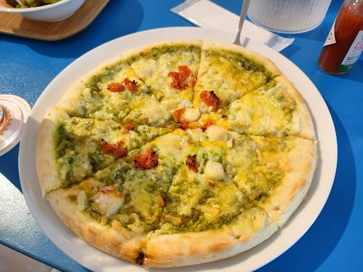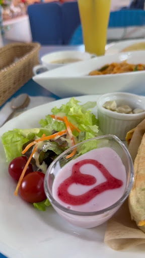 平日の利用です。 お昼ということもあり、テラス席以外は満席です。 陽射さもあり気温も高いので、店内が開くのを待ちました。 奥のホテル利用客専用テーブル横のクーラーが効いた場所の長椅子で少し待ちます。 呼ばれる頃には、テラス席も満席でした。 タイミングが良かったです。 PASTAとドリンクセットとピザ(バジルソース)のセットを各自オーダーしました。 パスタは平打で蟹の旨味がしっかりと感じられる美味しいです。 こちらはサラダ付きです。 ピザも概ね25cm程ありソースもしっかりして美味しいです。(生地がもう少し美味しければなぁ!) 少しびっくりしたのは、お水がとても美味しかったです(笑) 私達は複数での来店で会話していたので時間を感じませんでした。 田舎のリゾートで時間を潰していると考えればこんな雰囲気だと思えば楽しく過ごせます。 しかし、気になる方だと不安に、感じるかもしれません。 欲を言えば店員さんのスピード感というか、 提供スピードやタイミングが...
