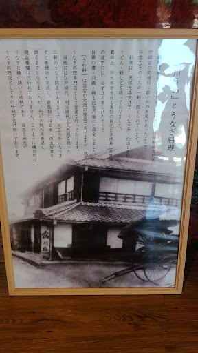 Read more・伊雑宮の街道筋で、天保元年に創業して約190年の老舗です。 現在はうなぎ料理専門店として営業していますが、創業時はうなぎ丼、仕出し弁当、うどん、餅を商い、宿をしていた時もあるとか。 案内された2階の和室は、宿の面影を残す落ち着いた部屋に、4人掛けと6人掛けのテーブル席が、2脚と3脚ありました。 肝心のうなぎは、外が香ばしくカリッとして中がふっくら柔らかな絶品です。丼や重の他にオリジナルの川うめ丼あります。ご飯の上に刻み海苔と大葉を散らし、短冊切りのうなぎの蒲焼きを盛りつけ、そのまま食べても美味しいけど、ワサビ醤油をかけたらさっぱりと頂けます。肝吸、漬物、サラダが付きます。 当地は、大正時代の最盛期にウナギの出荷量が日本一誇ってい...