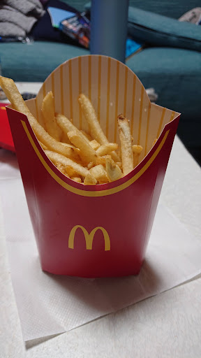 Read moreポケモンのハッピーセットのせいなのか、土曜日の夜だったからなのか、混雑していました。セルフオーダーの機械が2台ありましたが、5人ずつくらい並んでいました。有人レジに並んで前から2番目でした。前の人はずーっと立っていましたが、店員さんが全く注文を聞きに来ません。10分くらい待ってやっと前の人の注文を聞きに来ました。自分がレジしてもらえる1番前に行くと「しばらくお待ち下さい。」と言われてからさらに10分程待ちました。その間何回も何人も店員さんは目の前を通り過ぎますが、目も合わさずスルー。なんだったら店内で食べるお客さんに品物を持って行くために、真横や後ろも通っていくのに無言。1回だけ目も合わさずに「お待たせしておりますー。お急ぎの方は?モバイルオーダーでお願いしますー。」と言われました。モバイルオーダーで注文して欲しいのも忙しいのも分かりますが、待っている客に目も合わさず無視し続けられる店員さんを初めて見ました。店員さんとして、というより人としてどうなのか。店員さん同士も何も喋らず無言で殺伐としていました。 流石に席に商品を持ってきたときは「大変お待たせしました。」と言っていました。そして、あんなにピロリピロリと揚げまくっていたのに、届いたポテト...
