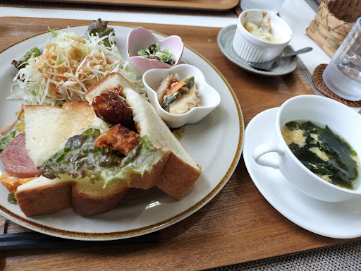 昼過ぎに立ち寄りました。駐車場は10台ぐらいです。座席は2人×2、4人×2、カウンター席が2人です。1人でも大丈夫と思います。 お店には雑貨(ブローチ、アクセサリー、キャンドル等)も販売されていました。 年末年始は12月28日まで、年始は1月8日からです。定休日は、毎週月、火曜日、第3日曜日です。 ランチは、コーヒー(お代わり可)、デザート(苺のムース、コーヒーゼリー、シフォンケーキのどれか一品を選べます)が付きます。 ランチは、ご飯とパン(各1,100円)で選べます。 カレー(900円)、焼きカレー(950円)です。 注文は、カレーをしました。 辛さは普通です。サラダも付いています。自家製のドレッシングもサラダとあっていました。新鮮でした。美味しかったです。次はランチを注文しようと思います。 ※デザートはデザートとセットにしないと付いてきません。 橋の入れ物に、橋の入れ物を使用した箸置きの折り方が裏面に印刷してありました。...