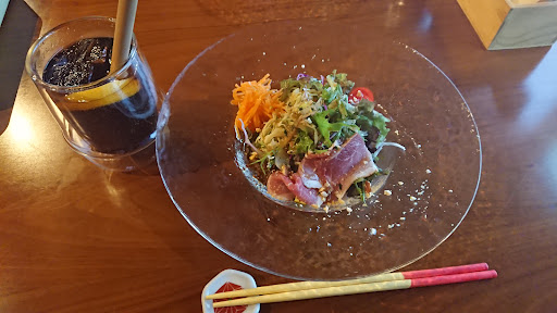 Read more引き戸を開け二階への階段を上って行くとちょうど窓際の席が空きましたよ、と女性の方が私達夫婦を案内して下さいました。窓際の席からの景色は海、九十九島、漁船、なかなかの風情があります。定番ランチぜんぶのせプレート1800円ドリンク付きを注文しました。見映えも味も言うこと無しですね。お腹いっぱいになりました。そしてさすがは升金の蔵、お店の中は凄い作りです。天井のデッカイ梁!思わずスマホで写真何枚も撮ってしまいました🎵。窓から見える景色を眺めながら升金汽船やからゆきさんの事をついつい考えてしまうちょっと贅沢なランチタイムでした。… その後、嫁さんマフィン持ち帰りしてうちに帰ってすぐ美味し~っ!と言いながら食べていました。おいおい今、お腹いっぱいって言ってただろぉ~😱。きな粉がつ...