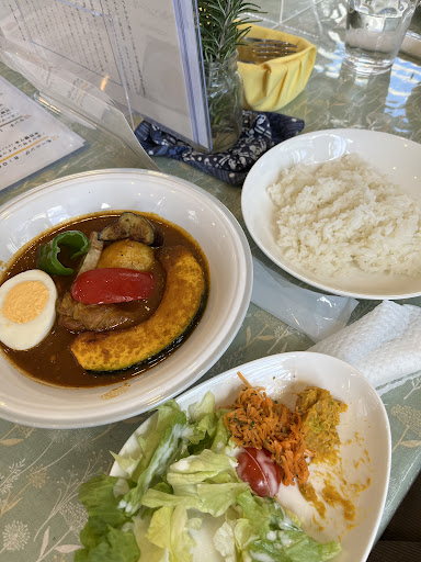 店内の雰囲気は明るく、気さくな店長さんが元気な愛犬達と共に暖かく出迎えてくれます。 私達はランチの時間に訪れ、日替わりランチとスープカレーを注文しました。 その日の日替わりランチはハンバーグでした。ハンバーグも美味しかったですが、付け合わせのお惣菜がどれも優しい味付けですごく気に入りました。 スープカレーはスパイスがとてもよく効いていて、好みがわかれるかもしれませんが、私はすごく美味しいと感じました。