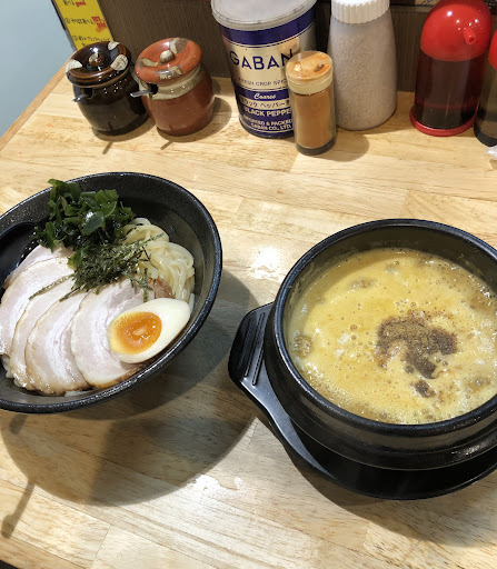 2022年9月夜の時間帯ですが、初めて島田本店に行き、期間限定のつけ麺900円(+チャーシュー4枚320円)を食べました。 つけ麺の味は決まっているため選べません。濃いめとか麺の硬さも選べません。ぐつぐつ熱々のスープが出てきたのでびっくりしました。 味はやや薄めで濃いめのスープが好きな方には物足りないかもしれません。チャーシューは吉田店に比べるとわりと薄かったです。炙りチャーシューにすれば良かったかも。。。麺は300gまで無料で選べてお得な感じではあります。 吉田店のとんこつ(醤油.塩)ラーメンはよく食べてきているため、美味しさは知っています。 スープがテーブルに跳ねたりしてしまうので、ティッシュペーパーがテーブルに用意してあるといいなぁと思いました。(どこかに置いてあったのかもしれませんが。) 接客対応は、とても気持ちの良い感じです。来るお客さん、帰るお客さんに対して挨拶もしっかりしていて受け答えも素晴らしいです。お若い二人男女の店員さんがお店を回しているのかな。女性の店員さんは吉田店にいらっしゃった時からとても優しい感じの対応をしてくださっていました。 島田本店は、男性客ばかりで入りにくいイメージでしたが、そんなこと全然ありませんでした。女性客も家族連れも来店しているし、入りやすい本店でした。 今度はいつものとんこ...