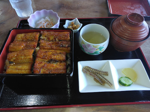Read more養殖鰻の丼物でしたが、じゅうぶんにおいしかったです。 パサパサしておらずプリプリとした弾力のある食感が魅力でした。また、100円追加で大盛りにできるのでお米が物足りない人は是非そうしてください。付け合せの酢の物はお酢が効いていて、漬物はあっさりとした味わいとなっています。他にも、うなぎの骨の揚げ物がありましたが、カリカリとした食感と香ばしい香りが口に広がり最高でした。 また、ここではお吸い物ではなく味噌汁が出てきます。ここでは捌いていないみたいです。 他にもゴリの天ぷらも頼ましたが...