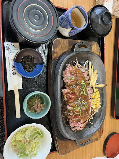 Read moreお気に入りの場所^^メニューも豊富でこの値段でこのボリュームは素晴らしく思えます^^むしろこの価格でこの肉の量を食せれるのはなかなかないと思います。女性にも大人気で、知り合いの方はどこへ行っても間食をすることができず、少しは残してしまうのだそうですが、その方も、ここのぞうさん亭のお肉は、大のお気に入りのようでぞうさん亭のお肉はいつも完食する様です^^特製のニンニクの効いたタレにぞっこんでした笑私も調子良いときは600g×2食べてしまうくらいステーキは絶品です^^ハンバーグも肉汁がいい意味で溢れすぎて凄い!!お伺いする度に象の置物等増えていたり、コラボや、限定のメニューも増えていたり飽きさせない店長の心意気が伝わります。店長さんは何やらご両親も高知市内のレストラン経営されているようで、若かれし頃から手伝いをしてたと言うこともありサラブレッドですな笑従業員からお聞きするには毎回賄いがでてくるし、メニューにはない賄いも簡単に作り上げ、食せれるっていうのは羨ましい笑行く価値あ...