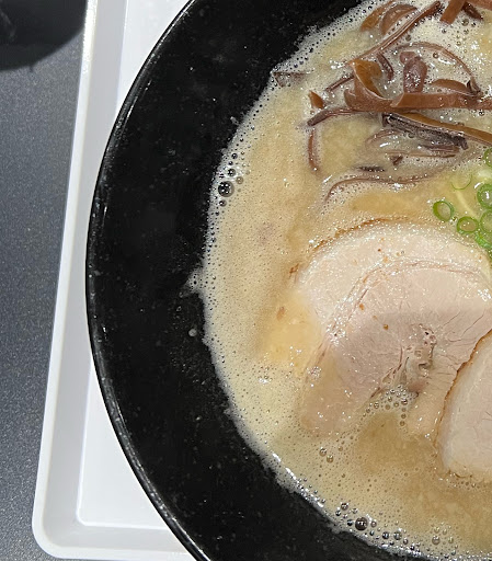 The soup is thick and creamy, yet sharpened by a strong soy-based seasoning that gives it a punchier, almost Kanto-like edge. Noodles are thin and flat-cut, with a satisfying snap that pairs perfectly with the broth. Toppings include pork chashu, scallions, and kikurage mushrooms—simple but classic. A bonus serving of shredded scallions from the friendly staff added to the warm impression.