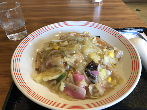 Read more2021.11.4 通常は24時まで営業なのですげ今は23時までの営業でラストオーダー22時半🌀 22時に訪れたので店内で食べれたのですが時間も時間だったのでお客さんは自分たちのみでした☆ 私はパウチメニューの彩り野菜の皿うどんを注文☆ そんなに待たずに出てきたのですがボリューム満点でビックリしました😅 …が美味しかったです☆ さつまいもやカボチャや秋の野菜にトマトにエビに…って完食しました☆ 相方はチャンポンセットかな? 頼んで餃子には柚子胡椒が付いてくるのですが柚子胡椒混ぜると美味しいです☆ 出来ればテーブルに押しベル置い...