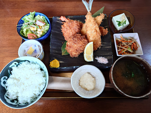 Read more清水町にある『刻ワスレ食堂』さん✨この道通ると看板の文字がいつも気になっていて、今回旦那とランチしに日曜日に行ってきました🙌時間は12時頃に到着しましたが、その時点で待ち5組目。敷地内に駐車スペースあるけど満パンだったので、隣の砂利駐車場に止めました(お店の人の誘導) 待ち時間的には20分ぐらいだったかなー🤔回転率は早かったような…お店の中に入ると、和な雰囲気の店内。メニューは揚げ物と丼物の2種類、一品物です☝️旦那はランチメニューの銀鮭フライ定食とビール(¥1.250+600)🍺私はMIXフライ定食に納豆付けました(¥1.880+90) どちらのセットにもドリンク付き。届いた食事量にビックリ🤯盛り付けもキレイで2度ビックリ🤣 私の膳は食事量オーバーだったので、旦那にもお裾分けして完食‼️魚や肉はとても柔らかく仕上がっていて、とっても満足なランチでした🤩☝️ 食事だけで行けば1人あたり¥2.000内だけど、旦那がビールとハイボール頼んだので¥4.320のお会計。普段和食を食べないよーって人は、ぜひ食べに行...
