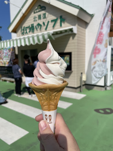 肝心のソフトクリームはバニラ、あまおう、ミックスから選べます。 卑しい私はミックスにしました。 33℃ある気温の中、あっという間に溶けてしまうので慌てて食べました💦 クリーミーで美味しかったですが、あまおうの味はあまり感じれずに一気食いしてしまいました💦
