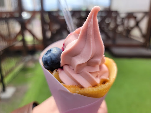 クレープやワッフルなど多種多様な品揃えで目移りしてしまいますが、目指してたのはソフトクリームだったのでわき目もふらずに券売機で購入して店の列に並びました☝️